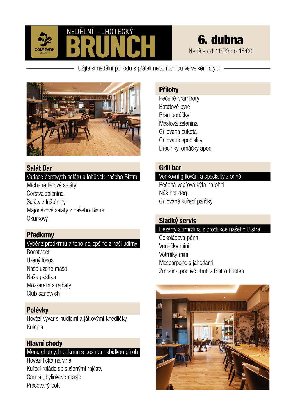 Přijďte na náš první nedělní BRUNCH a vychutnejte si gastronomický zážitek v příjemném prostředí.