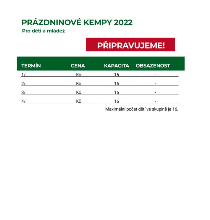 V průběhu letních prázdnin pořádáme týdenní příměstské kempy plné golfového vyžití. Náš sportovní areál je kousek od centra Ostravy a přece v prostředí přírody. Pro děti je připravené zázemí našeho sportovního areálu, včetně stravování v restauraci. Zajistíme svačinky, obědy i pravidelný pitný režim.