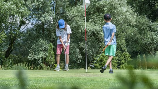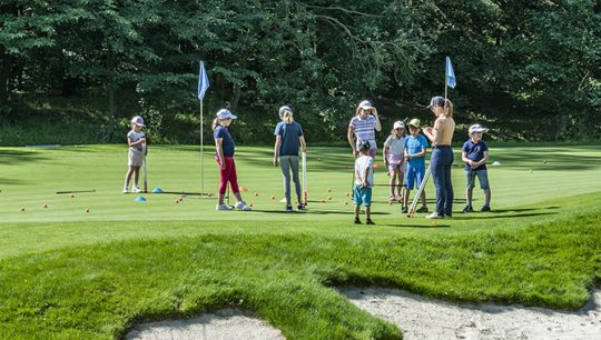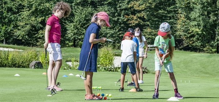 Program je veden našimi trenéry dětské golfové akademie. Výuka golfu je určena jak pro začátečníky, tak i pro pokročilé ve věku 7 až 15 let. Začátečníci se seznámi s pravidly a základy golfu, vyzkouší si jednotlivé techniky krátké a dlouhé hry. Výuka pokročilých probíhá na tréninkových plochách a 6 jamkovém hřišti, kde se učí golfovým pravidlům, teorii a etiky. Pohybují se ve “flajtech” a soutěží o nejlepší výsledky.